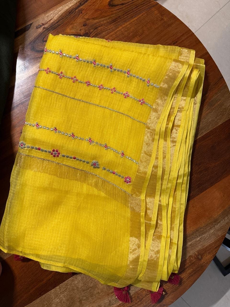 - Air dry in shade, away from direct sunlight. Avoid wringing or rubbing the saree.
